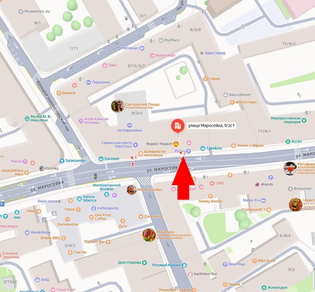 г. Москва, м. Китай-город, ул. Маросейка, д. 9/2, стр. 1, подъезд 2, домофон 8, этаж 3, офис 3. Вход через подъезд «Фотокерамика».